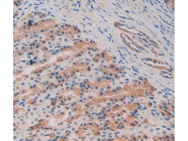 - The antibody is a rabbit polyclonal antibody raised against C8b. It has been selected for its ability to recognize C8b in immunohistochemical staining and western blotting.