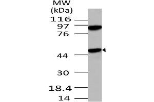 A partial length recombinant APG4B protein (amino acids 150-393) was used as the immunogen for this antibody.