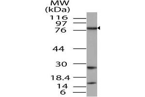 - A partial length recombinant TAB3 protein (amino acids 1-350) was used as the immunogen for this antibody.