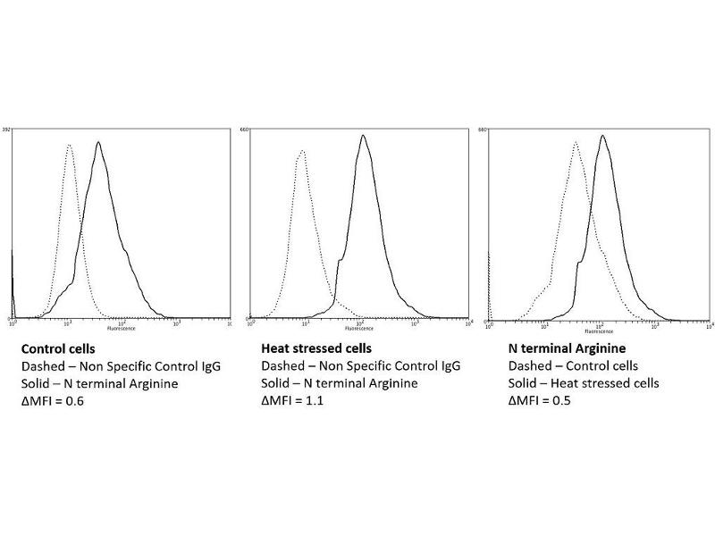 A 1:1000 dilution of ABIN5066980 was sufficient for detection of N-terminal Arginylation in 0.5 ug of N-terminal Arginine peptide conjugated to BSA by ECL immunoblot analysis using goat anti-mouse IgG:HRP as the secondary antibody.