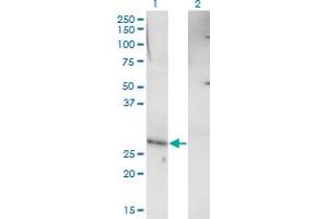 RHOXF1 (NP_644811.1, 1 a.a. ~ 110 a.a) partial recombinant protein with GST tag. MW of the GST tag alone is 26 KDa.