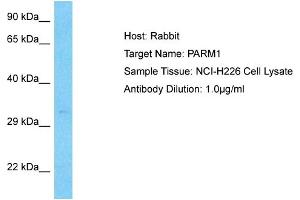 This is a rabbit polyclonal antibody against PARM1. It was validated on Western Blot.
