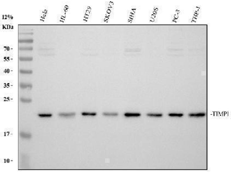 - Anti-TIMP1 Antibody (ABIN5519064). Tested in ELISA, WB applications. This antibody reacts with Human, Mouse, Rat. This is a premium antibody that guarantees superior quality, high affinity, and strong signals with minimal background in Western blot applications.
