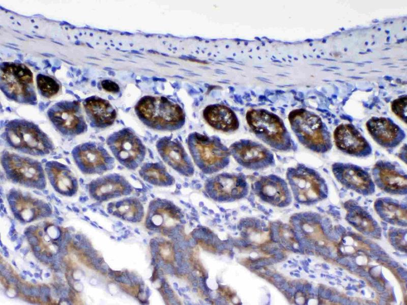 Tissue Specificity: Highly expressed in epithelial tissues, particularly those of the gastrointestinal and respiratory tracts, such as large intestine and trachea, followed by kidney, small intestine, appendix and stomach.