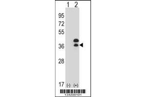 - This antibody is purified through a protein A column, followed by peptide affinity purification.