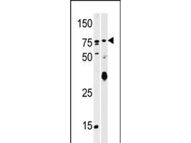 This SCYL2 antibody is generated from rabbits immunized with a KLH conjugated synthetic peptide between 643-672 amino acids from the C-terminal region of human SCYL2.