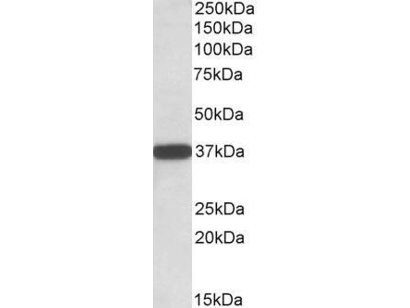 Western Blot: Approx 37 kDa band observed in Human Placenta, Testis and Umbilical Cord lysates (calculated MW of 38.2 kDa according to NP_001165131.1). Recommended concentration: 0.01-0.03 μg/mL.