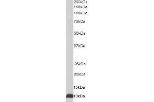 Western Blot: Approx 10 kDa band observed in lysates of cell line HepG2 (calculated MW of 10.9 kDa according to NP_002148.1). Recommended concentration: 0.01-0.03 μg/mL.