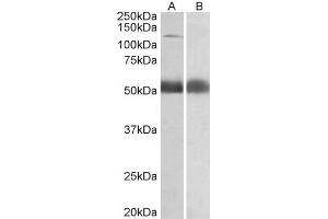 Western Blot: Approx 140 kDa band observed in Human Prostate lysates (calculated MW of 138 kDa according to NP_001091868.1and NP_004362.2). Recommended concentration: 0.5-2 μg/mL. An additional band of 52 kDa was consistently observed, however this band was