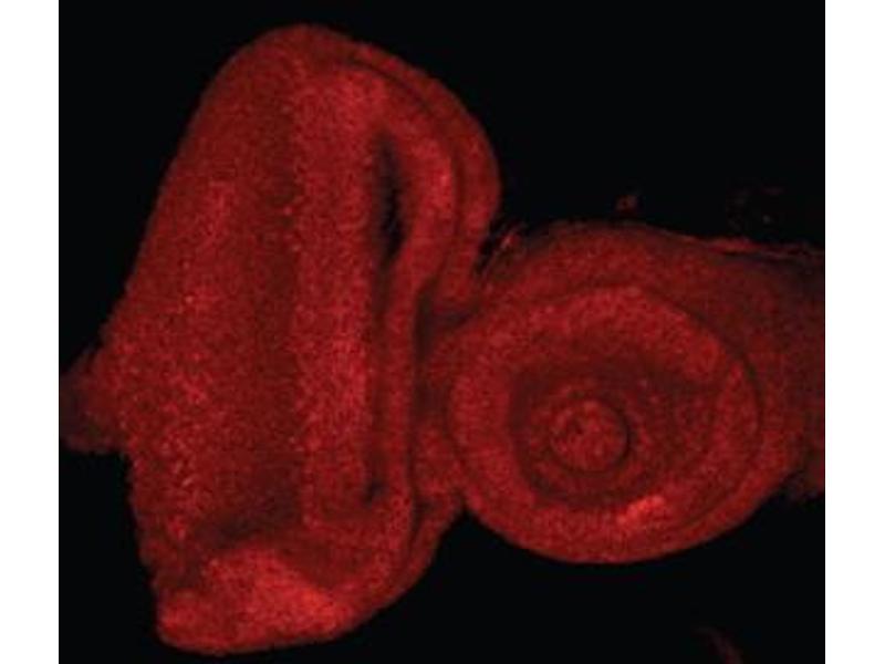 Immunofluorescence:This antibody shows identical pattern in the Drosophila eye-antennal imaginal disc as was observed before with a different antibody (Moon et al, Mol Cell Biol. 2006 Oct,26(20):7601-15. PMID: 16954388). Recommended conce