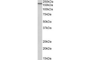 Western Blot: Approx 170 kDa band observed in lysates of cell line HeLa (calculated MW of 134 kDa according to NP_005219.2). The observed molecular weight corresponds to the glycosylated form. Recommended concentration: 0.1-0.3 μg/mL.