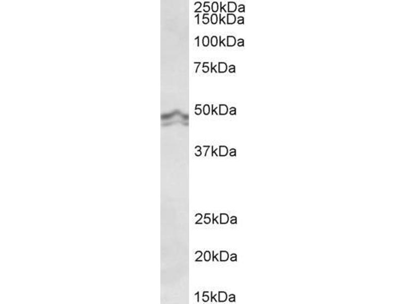 Western Blot: Approx 48 kDa band observed in lysates of cell line A549 (calculated MW of 48.7 kDa according to NP_009163.2). Recommended concentration: 0.1-0.3 μg/mL. Primary incubation was 1 hour.