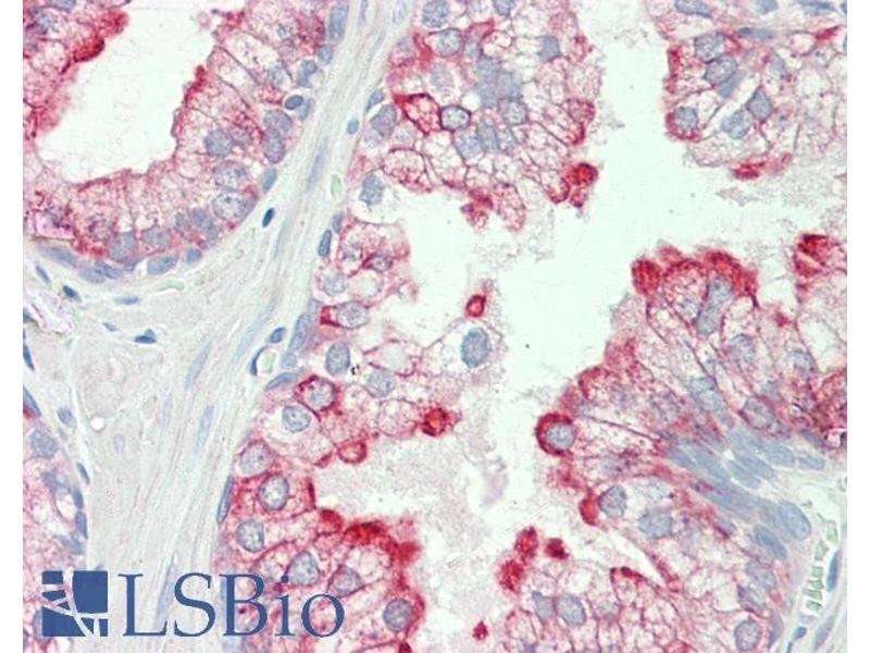 Immunohistochemistry: Paraffin embedded Human Prostate. Recommended concentration: 5 μg/mL.