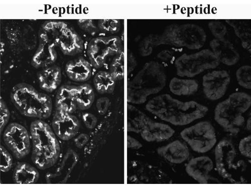 Western Blot: Approx 90 kDa band observed in Human renal cortical brush-border membrane lysates (calculated MW of 83.0 kDa according to NP_075062.2). Recommended concentration: 10 μg/mL for overnight incubation.