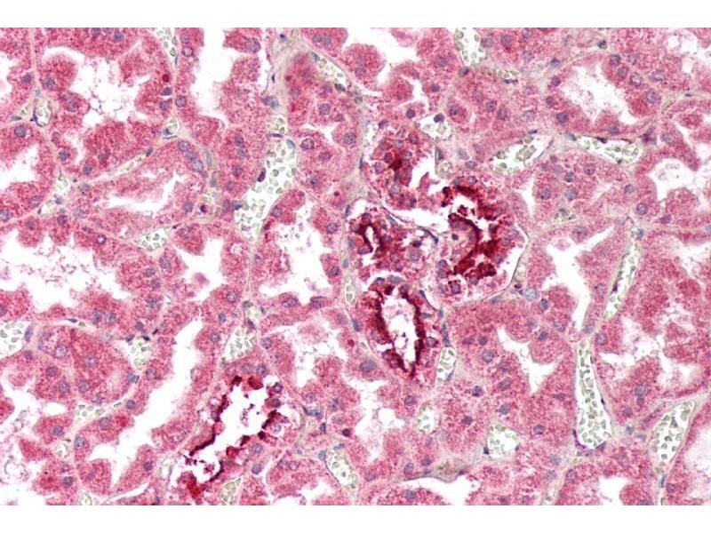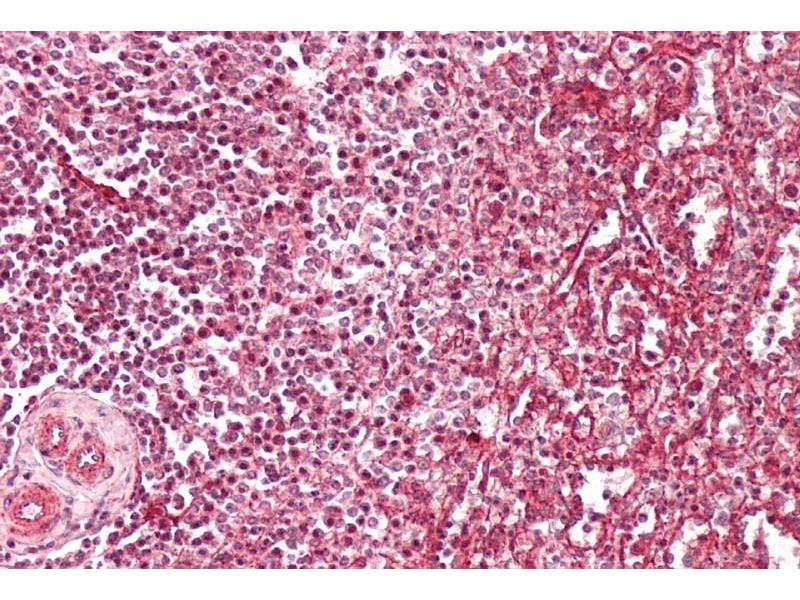 Immunohistochemistry: Paraffin embedded Human Kidney and Spleen. Recommended concentration: 2.5 μg/mL.