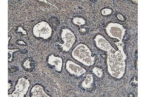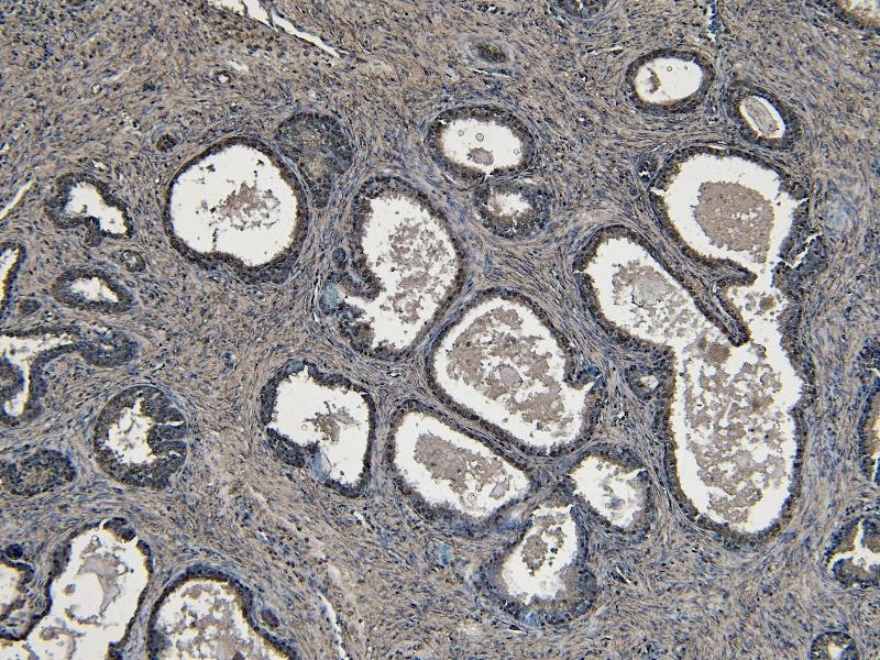 Immunohistochemistry: Paraffin embedded Human Prostate. Recommended concentration: 4-6 μg/mL.