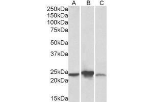 Western Blot: Approx 24 kDa band observed in Human, Mouse, and Rat Liver lysates (calculated MW of 22.3 kDa according to NP_116139.1). Recommended concentration: 0.3-1 μg/mL.