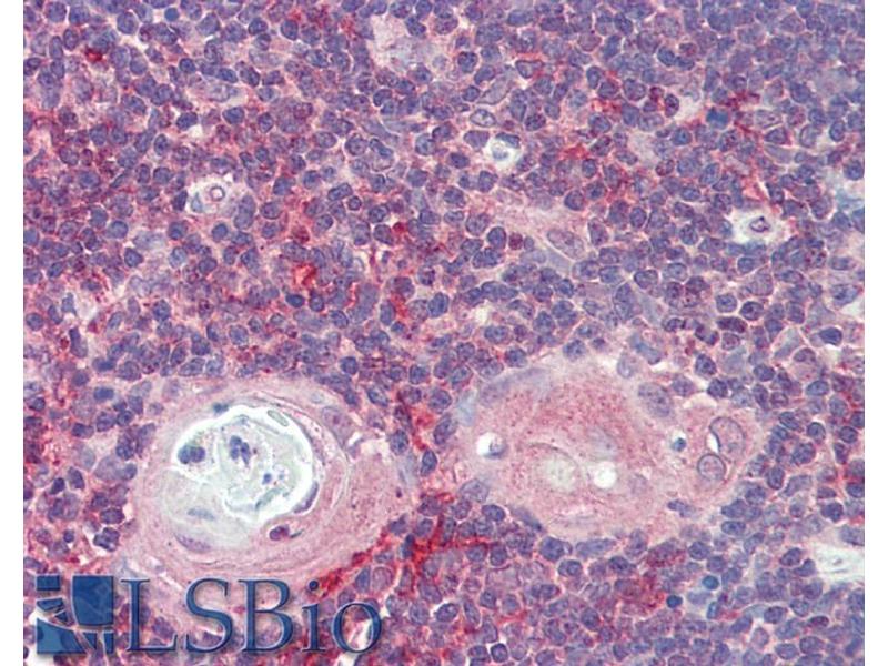 Immunohistochemistry: Paraffin embedded Human Thymus. Recommended concentration: 5 μg/mL.