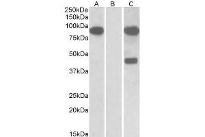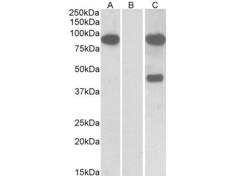 Western Blot: In transfected HEK293 transiently expressing Human Numbl and DYKDDDDK tagged), a band of approx. 85 kDa is observed. No bands are observed in mock-transfected HEK293 and the same band is observed using anti-myc antibody. Recommended concent