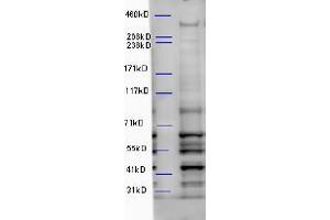 Western Blot: Approx 400 kDa band observed in Mouse Brain lysates (calculated MW of 395 kDa according to NP_055806.2). Data obtained from anonymous customer. The lower molecular weight bands are non-specific. We call for caution when used for other assays