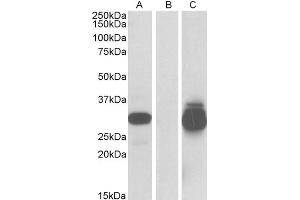Western Blot: In transfected HEK293 transiently expressing full-length Human PPPDE1(myc and DYKDDDDK tagged), a band of approx. 30 kDa was observed. No bands were observed in mock-transfected HEK293 and the same band was observed using anti-myc tag antibo