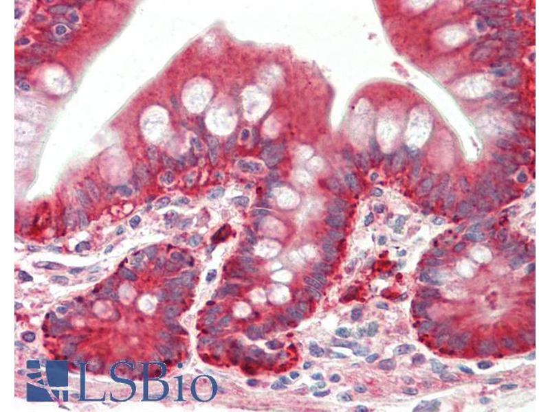 Immunohistochemistry: Paraffin embedded Human Small Intestine. Recommended concentration: 5 μg/mL.