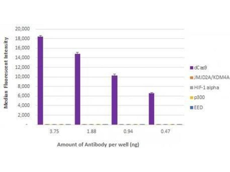 - AbFlex™ Cas9 antibody was expressed as full-length IgG with mouse immunoglobulin heavy and light chains (IgG2a isotype) in mammalian 293 cells. Cas9 is a nuclease from Streptococcus pyogenes that can be targeted to particular DNA sequences through a guide RNA that results in double-stranded breaks in DNA. Cas9 is part of the CRISPR/Cas9 gene-editing system that can create a DNA break at a specific location with the genome. CRISPR (clustered regularly interspaced short palindromic repeat) is an adaptive immune system that provides protection against mobile genetic elements (viruses, transposable elements and conjugative plasmids). CRISPR clusters contain spacers, sequences complementary to antecedent mobile elements, and target invading nucleic acids. CRISPR clusters are transcribed and processed into CRISPR RNA (crRNA) Probable. In type II CRISPR systems correct processing of pre-crRNA requires a trans-encoded small RNA (tracrRNA), endogenous ribonuclease 3 (rnc) and this protein. The tracrRNA serves as a guide for ribonuclease 3-aided processing of pre-crRNA. Subsequently Cas9/crRNA/tracrRNA endonucleolytically cleaves linear or circular dsDNA target complementary to the spacer. The target strand not complementary to crRNA is first cut endonucleolytically, then trimmed by 3'-5' exonucleolytically. DNA-binding requires protein and both RNA species. Cas9 probably recognizes a short motif in the CRISPR repeat sequences (the PAM or protospacer adjacent motif) to help distinguish self versus nonself.