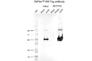 AbFlex® antibodies are recombinant antibodies (rAbs) that have been generated using defined DNA sequences to produce highly specific, reproducible antibodies. The unique advantages of the AbFlex® antibody are its flexible labeling and purification options. Each AbFlex® antibody contains a Sortase recognition motif (LPXTG) to covalently add fluorophores, enzymatic substrates (HRP, AP...etc), peptides, DNA, drugs or other labels to the antibody in a directed and reproducible manner using our Sortag-IT Labeling Kits. Every antibody also contains a 6xHis tag, which can be used with nickel-based purification systems, and an avidin tag sequence for enzymatic biotin conjugation using the biotin ligase, BirA.