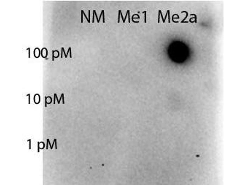 Immunogen: STAT5A [Asym-dimethyl Arg31] affinity purified antibody was prepared from whole rabbit serum produced by repeated immunizations with a synthetic monomethylated peptide surrounding Arginine 31 of human STAT.