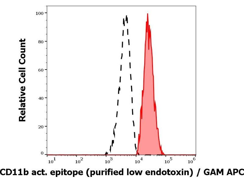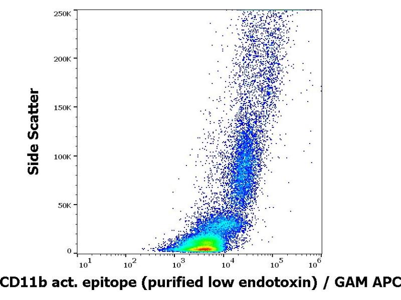 The mouse monoclonal antibody CBRM1/5 recognizes an activation-dependent epitope on extracellular part of CD11b (Mac-1alpha), a 165-170 kDa type 1 transmembrane protein mainly expressed on monocytes, granulocytes and NK-cells. The antibody recognizes a subset of CD11b molecules on neutrophils and monocytes activated with chemoattractants or phorbol esters and it does not recognize CD11b on non-activated cells.