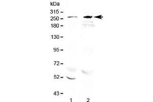 Optimal dilution of the RanBP2 antibody should be determined by the researcher.\. Western Blot: 0.5-1 μg/mL