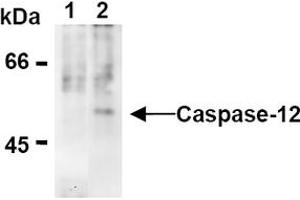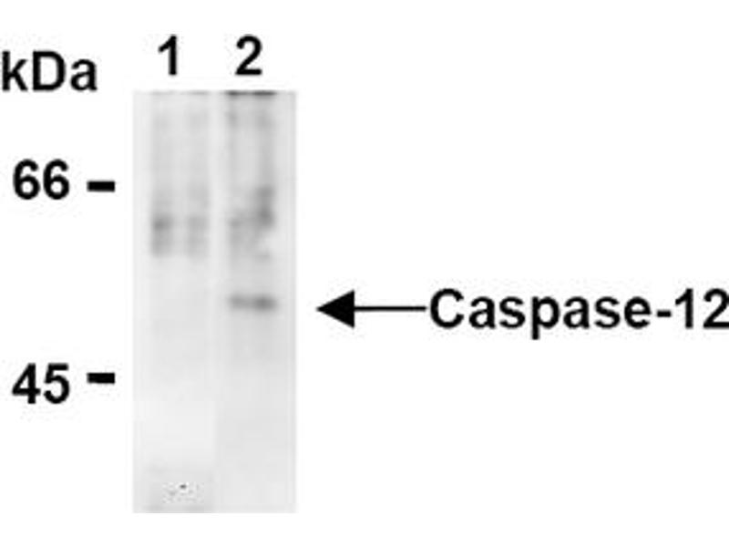 Caspase-12 is localized to the endoplasmic reticulum (ER), but not to cytoplasm or mitochondrion. Caspase-12 is activated by ER stress, including disruption of ER calcium homeostasis and accumulation of excess proteins in ER, but not by membrane- or mitochondrial-targeted apoptotic signals. One well-known cause of ER stress in neurons is the accretion of amyloid-beta, the insoluble protein that forms plaques in the brains of patients with Alzheimer's disease. Caspase-12 mediates cytotoxicity induced by amyloid-beta and ER stress-induced apoptosis. Caspase-12 is ubiquitously expressed in tissues. Similar to other members of the Caspase family, Caspase-12 requires cleavage of the prodomain to activate its proapoptotic form.Synonyms: CASP-12, CASP12, Inactive caspase-12