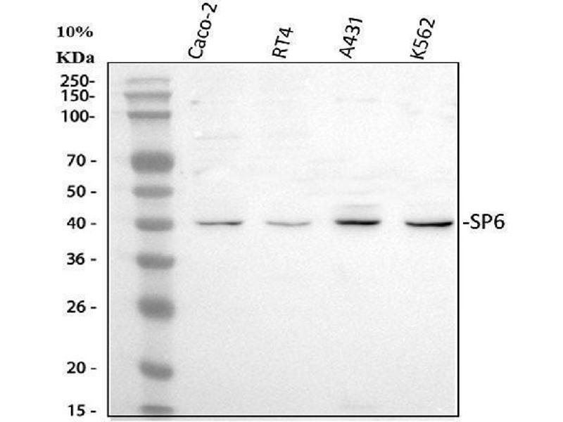 - Anti-SP6 Antibody (ABIN5692945). Tested in IF, IHC, ICC, WB applications. This antibody reacts with Human, Mouse, Rat. This is a premium antibody that guarantees superior quality, high affinity, and strong signals with minimal background in Western blot applications.