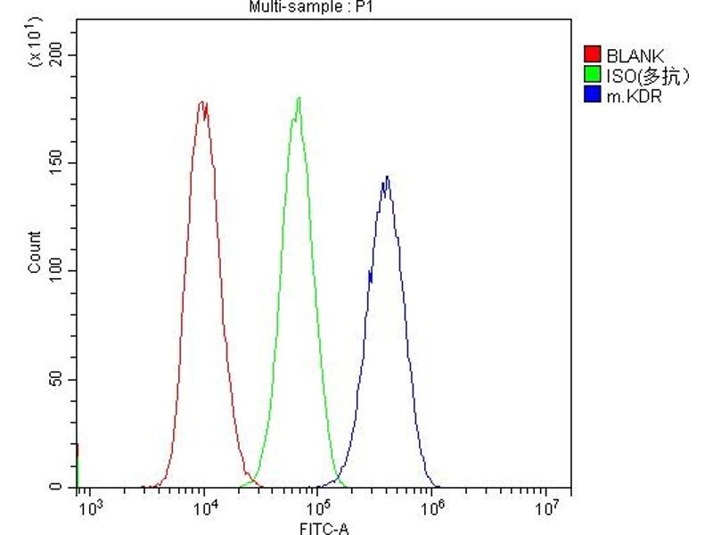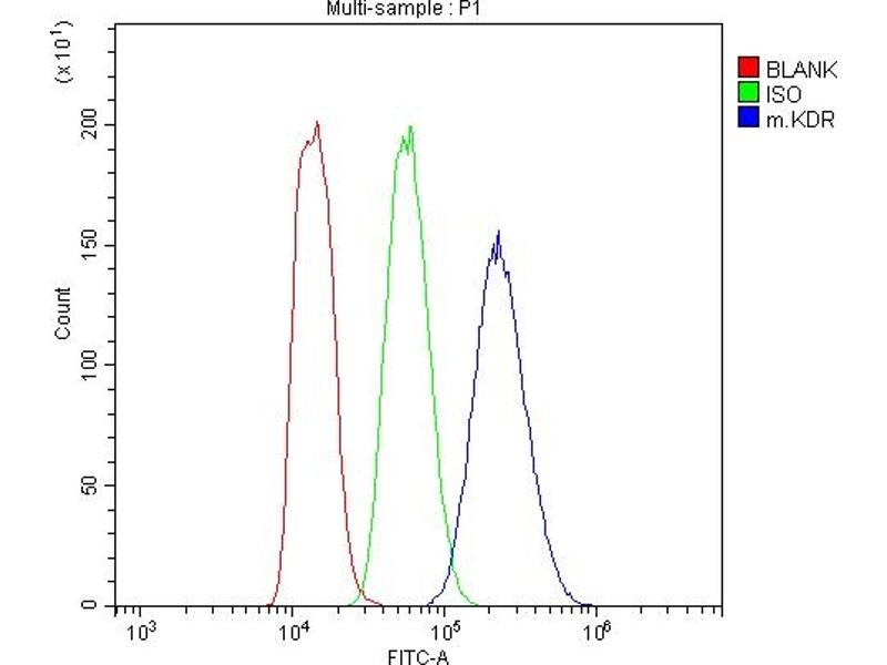 Background: KDR (Kinase Insert Domain Receptor), also known as FLK1, VEGFR or VEGFR2, is a VEGF receptor. KDR is the human gene encoding it. Vascular endothelial growth factor (VEGF) is the only mitogen that specifically acts on endothelial cells. Its expression is upregulated by hypoxia, and its cell-surface receptor, known as fetal liver kinase-1 (Flk1) in mouse, is exclusively expressed in endothelial cells. Flk1 is the mouse homolog of KDR.