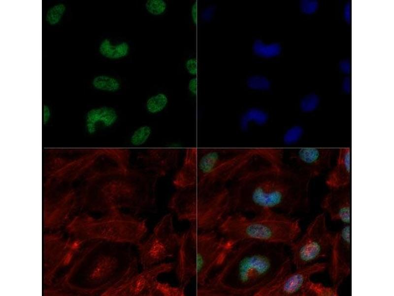 Immunogen: Anti-Histone H3 K4-Me3/K9-Ac affinity purified antibody was prepared from whole rabbit serum produced by repeated immunizations with a synthetic peptide with a methylation surrounding Lysine 4 and an acetylation surrounding Lysine 9 of human Histone H3.