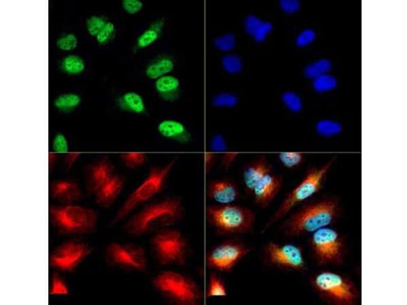 Immunogen: Anti-Histone H3 [ac Lys9/phospho Ser10] affinity purified antibody was prepared from whole rabbit serum produced by repeated immunizations with a synthetic peptide with a acetylation surrounding Lysine 9 and a phosphorylation surrounding serine 10 of human Histone H3.