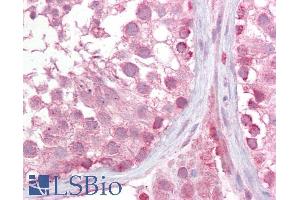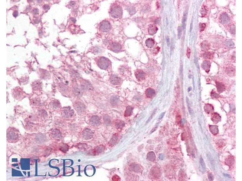 Immunohistochemistry: Paraffin embedded Human Testis. Recommended concentration: 2.5 μg/mL.