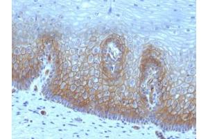 It recognizes a protein of 75 kDa, identified as Thrombomodulin. Thrombomodulin is a transmembrane glycoprotein with natural anticoagulant properties. It is normally expressed by a restricted number of cells, such as endothelial and mesothelial cells. In addition, synovial lining and syncytio-trophoblasts of placenta also express thrombomodulin. This protein is present in almost all of benign vascular tumors and majority of malignant vascular tumors (Kaposi s sarcoma, angiosarcoma, and epithelioid hemangioendothelioma). Hence, anti-thrombomodulin serves as a sensitive marker for lymphatic endothelial cells and their tumors. Recently, thrombomodulin antibody has been used for mesothelial cells and malignant mesotheliomas.