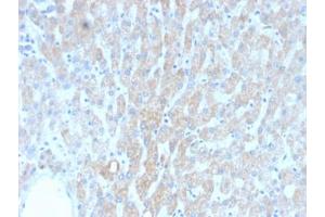 1. The prediluted format is supplied in a dropper bottle and is optimized for use in IHC. After epitope retrieval step (if required), drip mAb solution onto the tissue section and incubate at RT for 30 min.\. Immunohistochemistry (FFPE): 0.5-1 μg/mL for 30 min at RT,Prediluted IHC only format: incubate for 30 min at RT (1) -