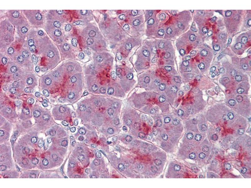 Immunohistochemistry: Paraffin embedded Human Pancreas and Colon. Recommended concentration: 3.75 μg/mL.