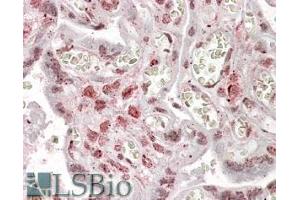 Immunohistochemistry: In paraffin embedded Human Placenta shows nuclear stsaining of trophoblasts. Recommended concentration: 2.5-3.8 μg/mL.