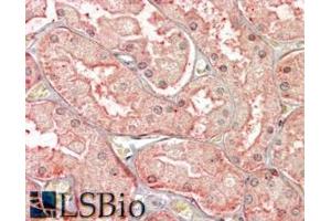 Immunohistochemistry: In paraffin embedded Human Kidney shows vesicular staining in epithelial cells of PCT. Recommended concentration, 3-6 μg/mL.