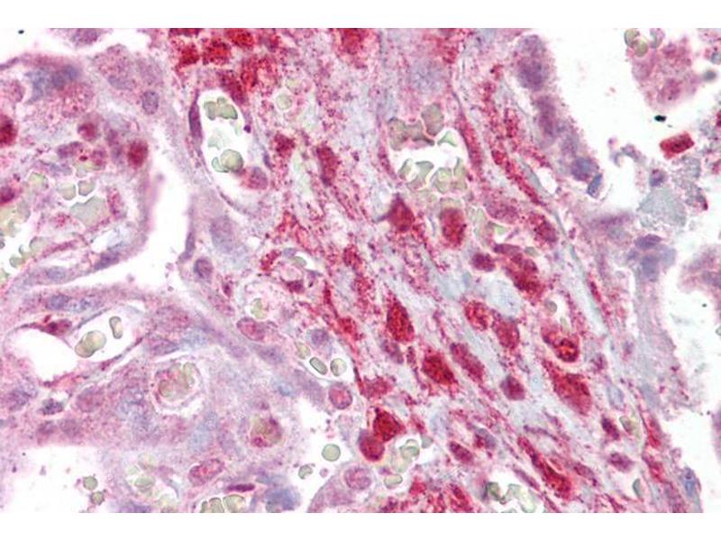 Immunohistochemistry: Paraffin embedded Human Placenta. Recommended concentration: 2.5 μg/mL.