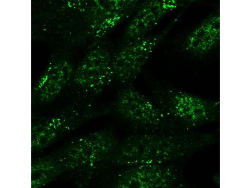 Immunocytochemistry: Vesicular staining of SNX1 (green) in formaldehyde-fixed SH5Y5Y. Recommended concentration, 3-5μg/ml.