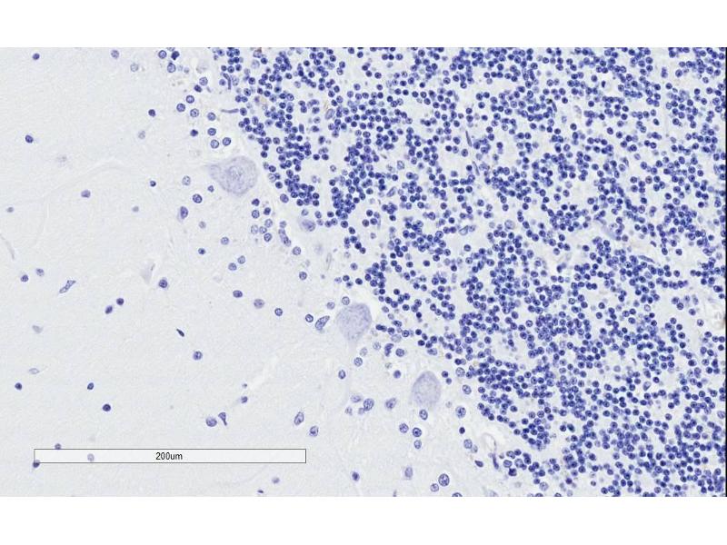 Immunohistochemistry: In paraffin embedded Human Cerebellum shows strong staining of axonal bundles through the granular layer. Recommended concentration: 1-2 μg/mL. Paraffin embedded Human Cortex. Recommended concentration: 3.75 μg/mL.