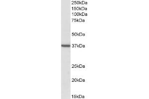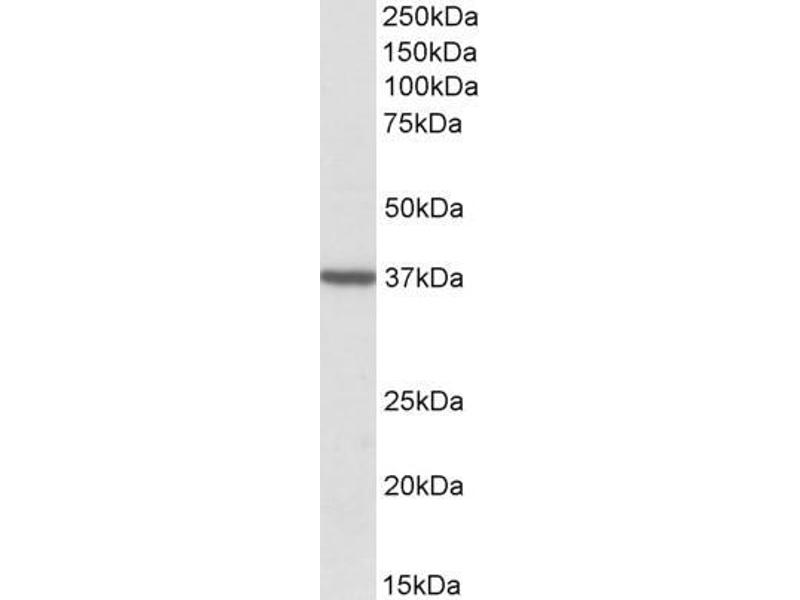 Western Blot: Approx 37 kDa band observed in Human Brain (Cerebellum and Frontal Cortex) lysates (calculated MW of 37.9 kDa according to NP_006105.1). Recommended concentration: 1-3 μg/mL. Primary incubation was 1 hour.