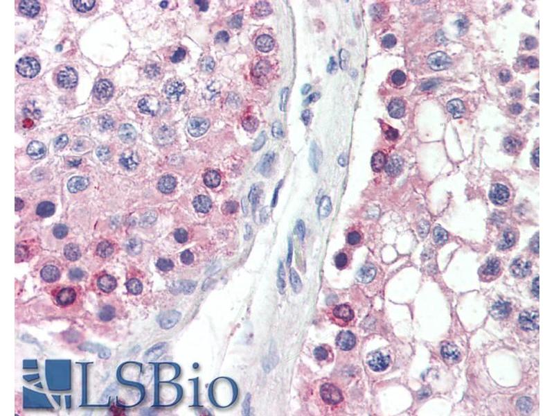 Immunohistochemistry: Paraffin embedded Human Testis. Recommended concentration: 5 μg/mL.