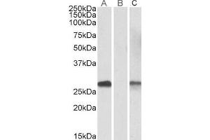 Western Blot: n transfected HEK293 transiently expressing Human DYDC1 (myc and DYKDDDDK tagged), a band of approx. 28 kDa is observed. No bands are observed in mock-transfected HEK293 and the same band is observed using anti-myc tag antibody. This 28 kDa b