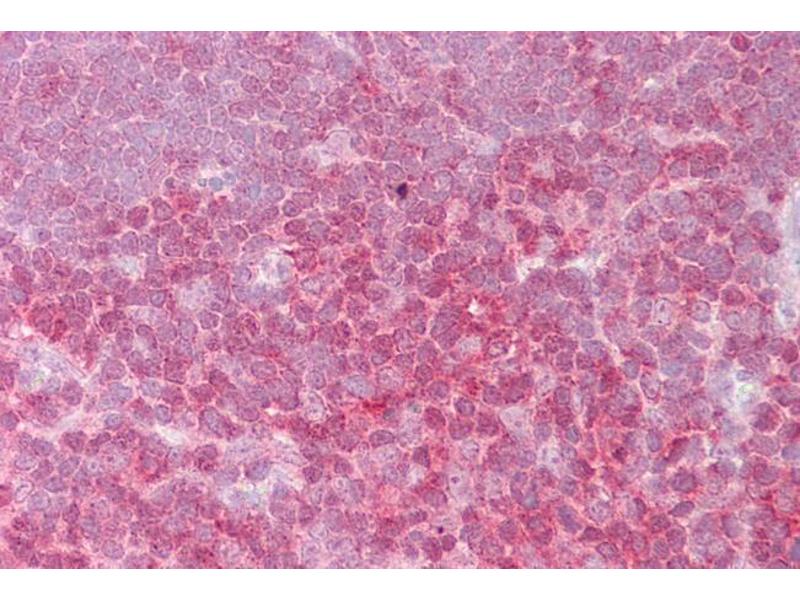 Immunohistochemistry: Paraffin embedded Human Thymus. Recommended concentration: 2.5 μg/mL.