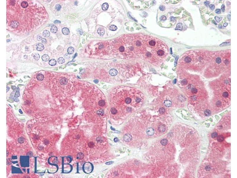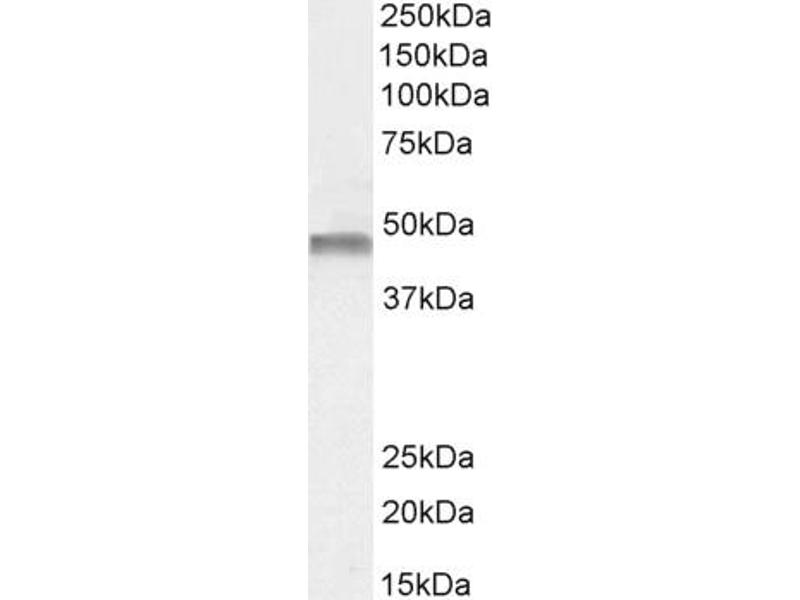 Western Blot: Approx 48 kDa band observed in Human Liver lysates and approx. 50-52 kDa in Rat Kidney lysates and in preliminary testing of Mouse Liver lysate (calculated MW of 51.9 kDa according to Hyman NP_000268.1 and Rat NP_036751.2). Recommended concen